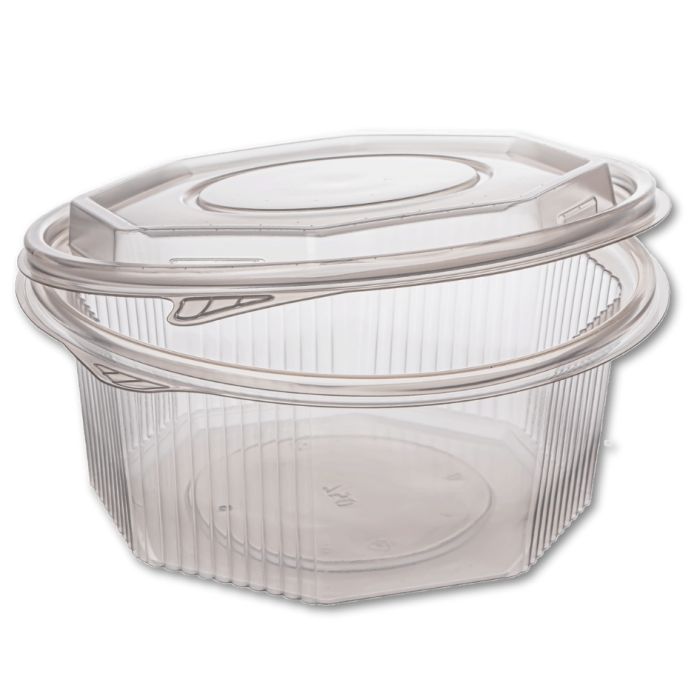 Diese transparente Kunststoff-Food-Box mit einem Volumen von 750 ml und integriertem Klappdeckel eignet sich ideal für kalte Speisen wie Salate, Pastagerichte oder Desserts im Take-away- und Selbstbedienungsbereich. Die Grösse von 165 x 165 x 70 mm bietet ausreichend Raum für vollwertige Portionen. Das lebensmittelechte PET-Material sorgt für eine glasklare Sicht auf den Inhalt, was die Frische und Attraktivität der Speise unterstreicht. Die Box ist formstabil, leicht stapelbar und ermöglicht eine hygienische Präsentation und Lagerung. Durch den Klappdeckel wird kein separates Zubehör benötigt, was den Handling-Aufwand reduziert und die Verpackung besonders effizient macht – ideal für Kantinen, Supermärkte oder mobile Verkaufsstände.