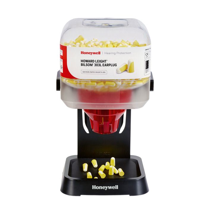 Der HONEYWELL BILSOM 303 HL400 Gehörschutzspender bietet 400 Paar hochdämmende Ohrstöpsel in einem praktischen, nachfüllbaren Spendersystem mit Wandhalterung und Standfuss. Die konische Form der weichen PU-Schaumstoff-Stöpsel sorgt für eine optimale Passform im Gehörgang und reduziert effektiv Lärmbelastungen bis zu 32 dB (SNR).