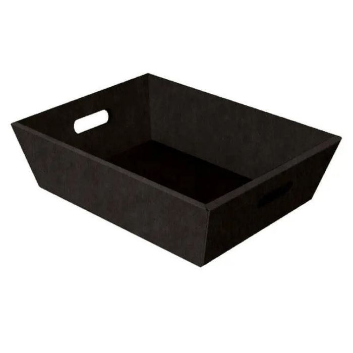 Der Geschenkkorb Pure Line in Schwarz mit Grifflöcher im Format 350 x 254 x 120 mm bietet viel Platz für umfangreichere Präsentzusammenstellungen. Die formstabile Konstruktion aus Karton gewährleistet eine sichere Präsentation des Inhalts und ist gleichzeitig leicht genug, um auch gefüllte Sets einfach handhaben zu können. Die neutrale schwarze Farbgebung passt zu vielen Themenwelten und eignet sich sowohl für saisonale als auch für ganzjährige Geschenkideen im Detailhandel, in Feinkostgeschäften oder für Firmengeschenke. Mit seinem Eigengewicht von 258 g bleibt der Korb robust, ohne an Flexibilität zu verlieren.