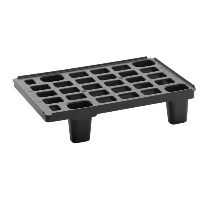 Die Viertelpalette im Format 600 x 400 x 137 mm, aus 100 % recyceltem HDPE, bietet eine statische Belastbarkeit von 700 kg und eine dynamische Belastbarkeit von 250 kg. Ihre lange Lebensdauer und hohe Belastbarkeit, kombiniert mit ihrer Wiederverwendbarkeit und Recyclingfähigkeit, machen sie zu einer idealen Wahl für nachhaltige Logistikprozesse. Die Palette ist ineinander stapelbar und widerstandsfähig im täglichen Einsatz. Mit ihren vier Füssen bietet sie eine stabile Basis für kleinere Ladungsträger, Behälter oder Displays. Durch ihr geringes Eigengewicht lässt sie sich leicht von Hand bewegen, ohne auf Tragfähigkeit zu verzichten. Das robuste HDPE-Material ist stossfest und beständig gegenüber Feuchtigkeit, was sie auch für den Einsatz in feuchten oder wechselnden Umgebungen prädestiniert. Ideal für Detailhandel, Lagerhaltung und Transport auf engstem Raum.
