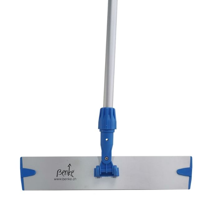 Zum Set gehört ein ergonomischer Teleskopstiel, der bis 180 cm ausziehbar ist und sich an die Körpergrösse anpassen lässt. Dadurch wird der Rücken entlastet und längere Reinigungseinsätze werden angenehmer. Das Gerät ist für Klettmopps in der passenden Breite vorgesehen und kann in bestehende Reinigungsabläufe integriert werden.