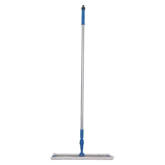 Dieses Mopp-Gerät Klett mit Sprühstiel und 45 cm Arbeitsbreite kombiniert eine stabile Mopp-Platte mit einem integrierten Sprühsystem für die kontrollierte, nebelfeuchte Reinigung. Die Mopp-Platte besteht aus Aluminium und ist mit einer verstärkten Verschraubung ausgestattet, wodurch sie formstabil bleibt und für den regelmässigen Einsatz ausgelegt ist. Das stark haftende Klettband fixiert den Moppbezug sicher, sodass er während der Reinigung nicht verrutscht und sich dennoch schnell wechseln lässt. Das System ist für Klettmopps in passender Breite vorgesehen.