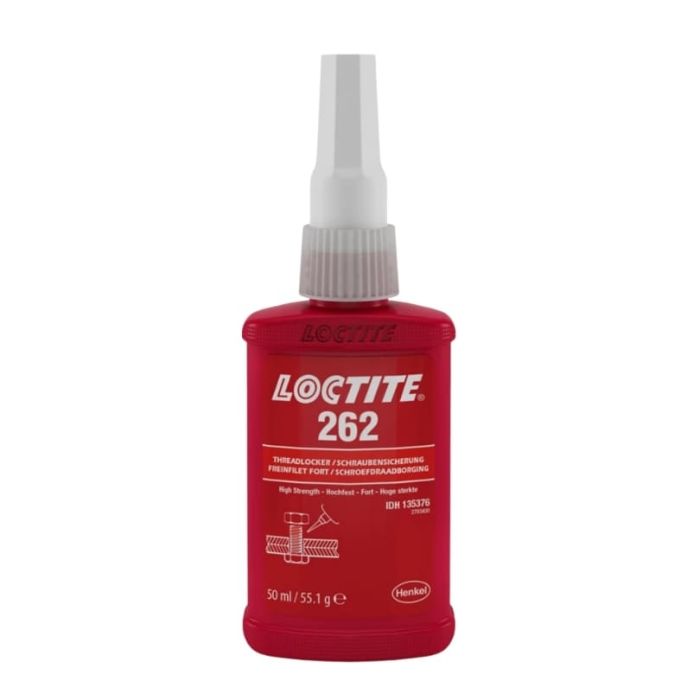 LOCTITE 262 eignet sich besonders für die Sicherung von Schrauben und Stehbolzen bis M25, z. B. in Motoren, Getrieben oder Maschinengehäusen. Das Produkt ist beständig gegenüber Medien wie Öl, Benzin, Bremsflüssigkeit oder Ethanol und erreicht nach vollständiger Aushärtung eine hohe Festigkeit, bleibt dabei jedoch wärmealterungsstabil bis 150°C. Die Verbindung ist mechanisch nur mit Erwärmung oder speziellen Verfahren wieder lösbar. Damit erfüllt LOCTITE 262 die Anforderungen an dauerhaft sichere Schraubverbindungen im Maschinen-, Fahrzeug- oder Anlagenbau.