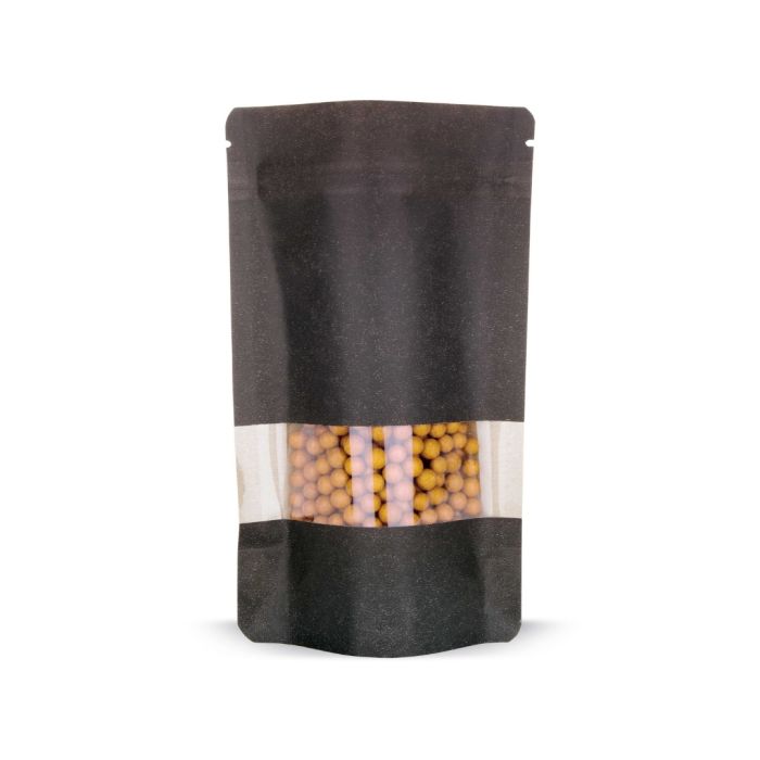 Der schwarze Standbodenbeutel mit Sichtfenster bietet eine elegante Verpackungslösung. Der Druckverschluss sorgt für einfaches Öffnen und Verschliessen, während das Sichtfenster den Inhalt attraktiv präsentiert. Mit einem Volumen von 500 ml eignet sich dieser Beutel besonders für kleinere Portionen oder hochwertige Produkte. Der Beutel ist aus Papier, PET und CPP gefertigt und daher robust und lebensmittelecht. Er ist schadstofffrei, was ihn zu einer sicheren Wahl für die Verpackung von Lebensmitteln macht. Abgerundete Ecken und eine Einreisskerbe erleichtern das Öffnen und Verschliessen. Ideal für den Einsatz in der Lebensmittelindustrie oder für Produkte, die eine hochwertige Verpackung erfordern.