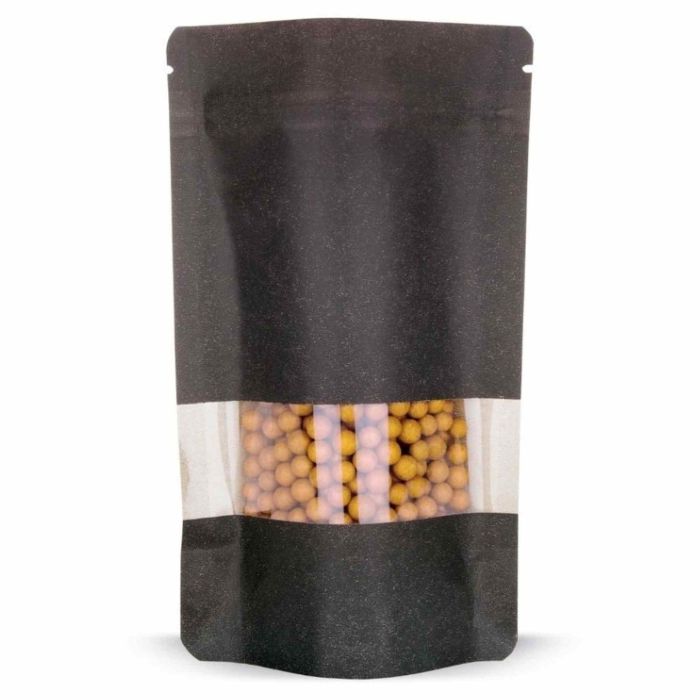 Standbodenbeutel mit Sichtfenster schwarz, 5000 ml, 300 x 370 mm sind für die Verpackung grösserer Mengen trockener Lebensmittel ausgelegt. Der mehrlagige Materialaufbau aus Kraftpapier, PET und CPP sorgt für eine stabile Aussenstruktur mit papierähnlicher Haptik und einer glatten, lebensmittelechten Innenfolie. Diese schützt den Inhalt vor äusseren Einflüssen wie Feuchtigkeit von aussen und unterstützt eine saubere Lagerung. Das integrierte Sichtfenster ermöglicht eine direkte Beurteilung des Inhalts, was insbesondere im Verkaufsumfeld die Produktauswahl erleichtert.